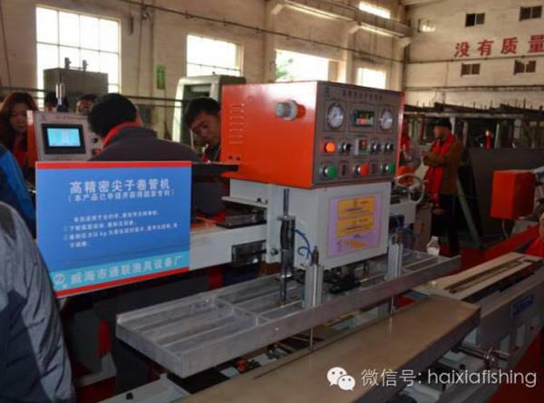 本次發(fā)布會通聯共展出13臺新型機械設備,均屬國際水平,其中國家專利產品高尖子卷管機,在發(fā)布會現場受到了國內外漁具制造商的強烈關注,此次發(fā)布會現場大約有400多家來自世界各地的漁具制造商參觀采購。